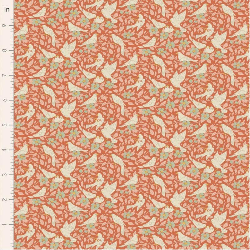PREORDER – Tilda Songbird Collection Fabric- Ava- Coral- 100644 Arriving February