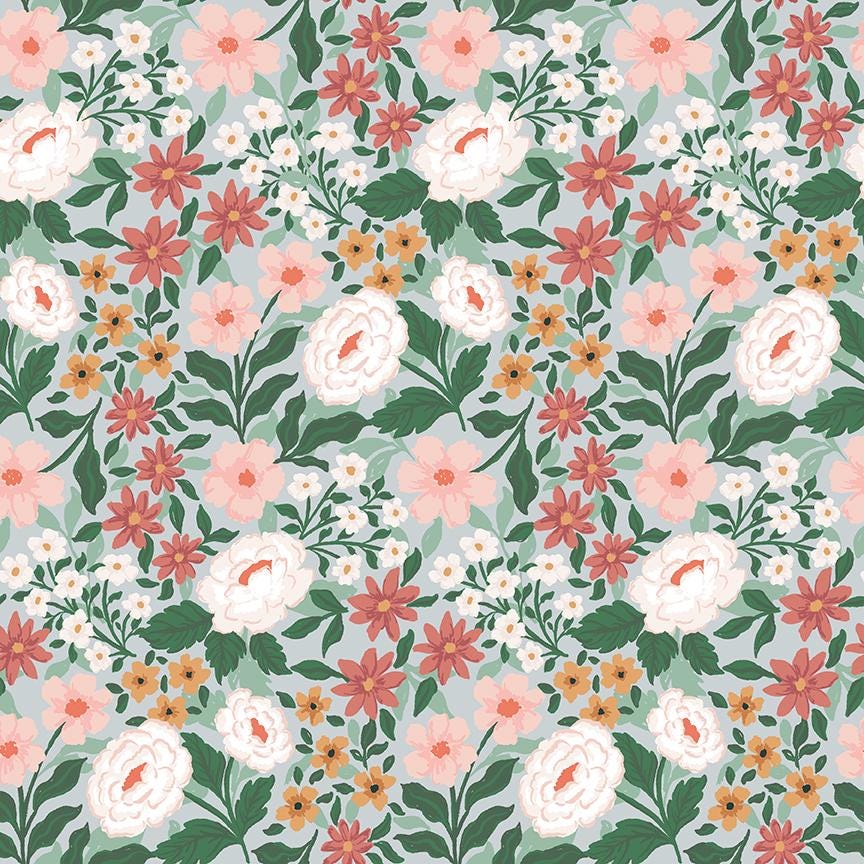 Sweet Cotton Tales by Cayla Naylor Design for Riley Blake Designs is great for quilting, apparel and home decor. This allover print features line drawn bunnies and flowers.