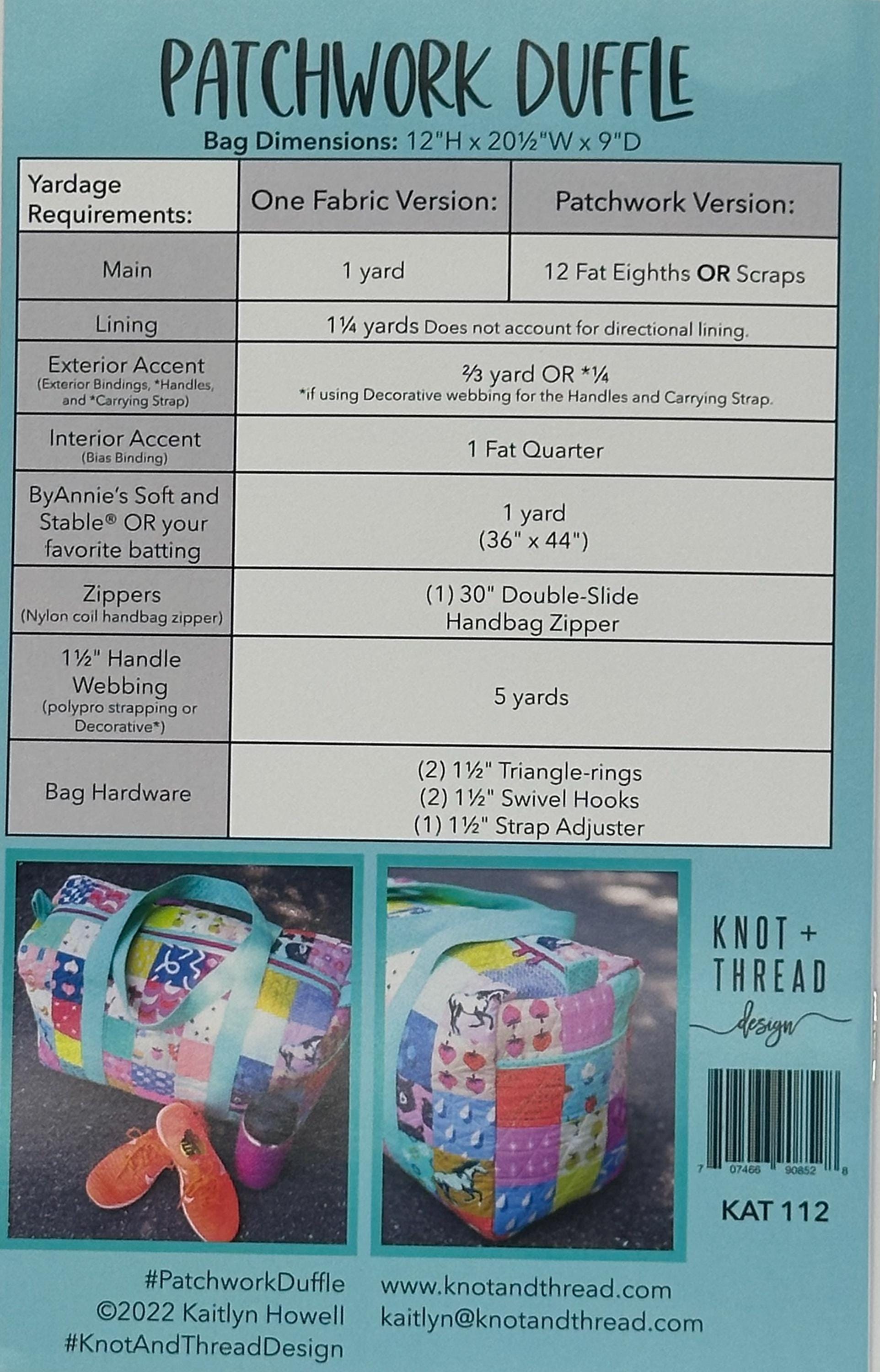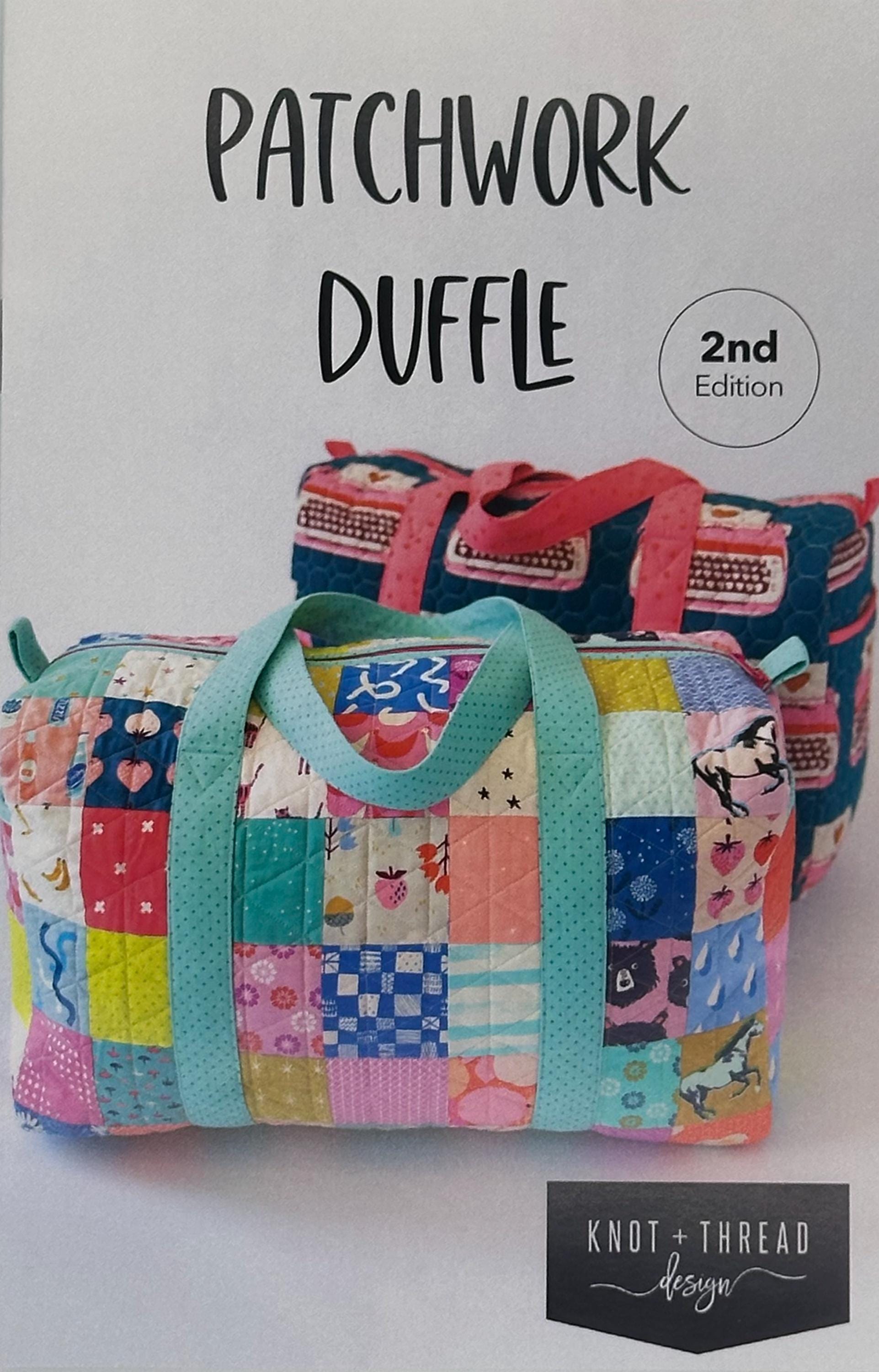 You really can carry it all with this giant duffle bag! Choose between a solid exterior fabric or scrap it up with some patchwork. There are two exterior pockets. Fill it up and take it on a trip!