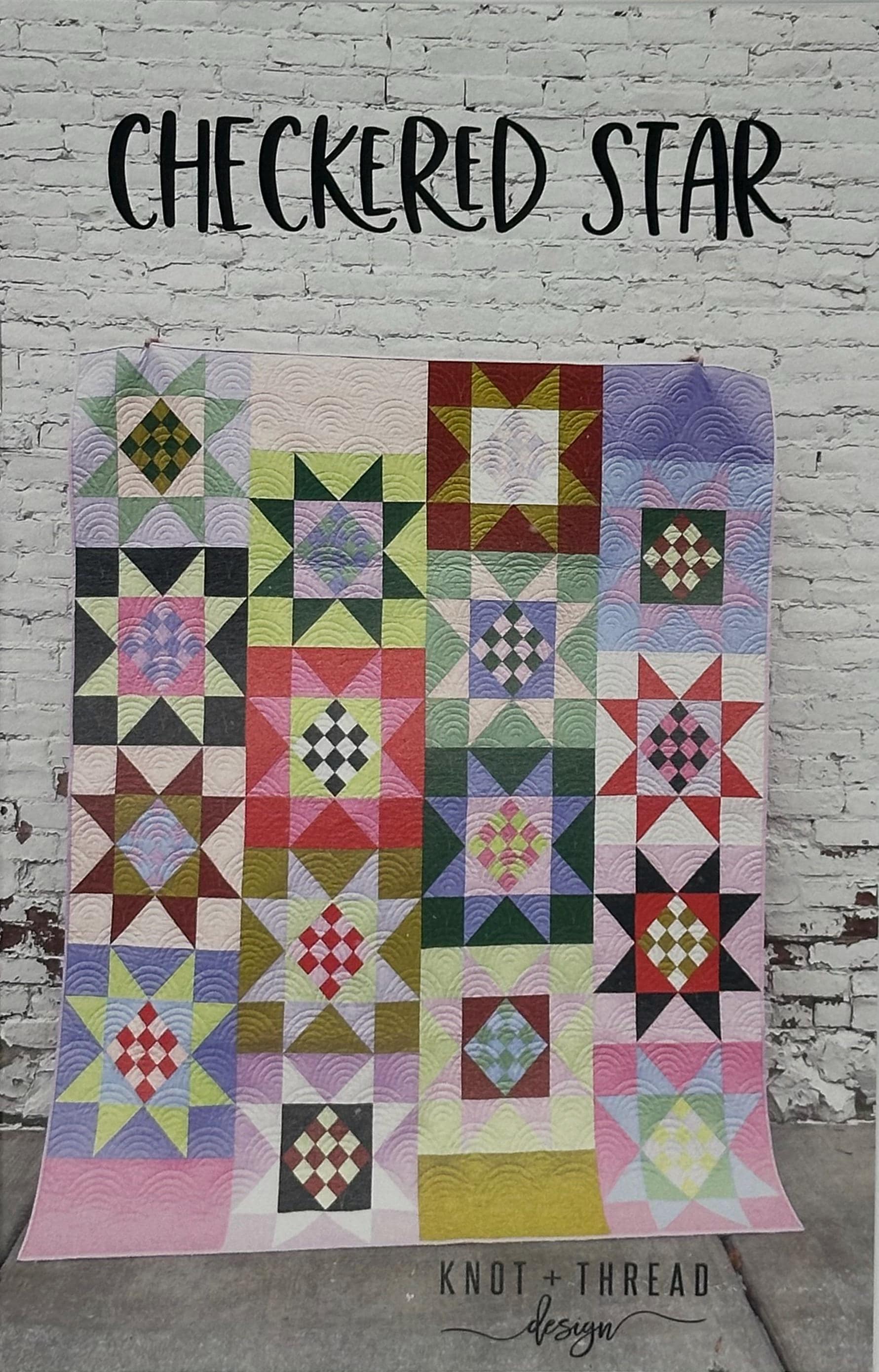 The Checkered Star Quilt pattern features a classic design with a modern twist. Each block showcases a vibrant and dynamic combination of checkered squares and sawtooth star. The alternating placement of these blocks adds a sense of movement and depth to the overall design. This pattern is a perfect blend of tradition and contemporary style, making it a timeless and eye-catching choice.