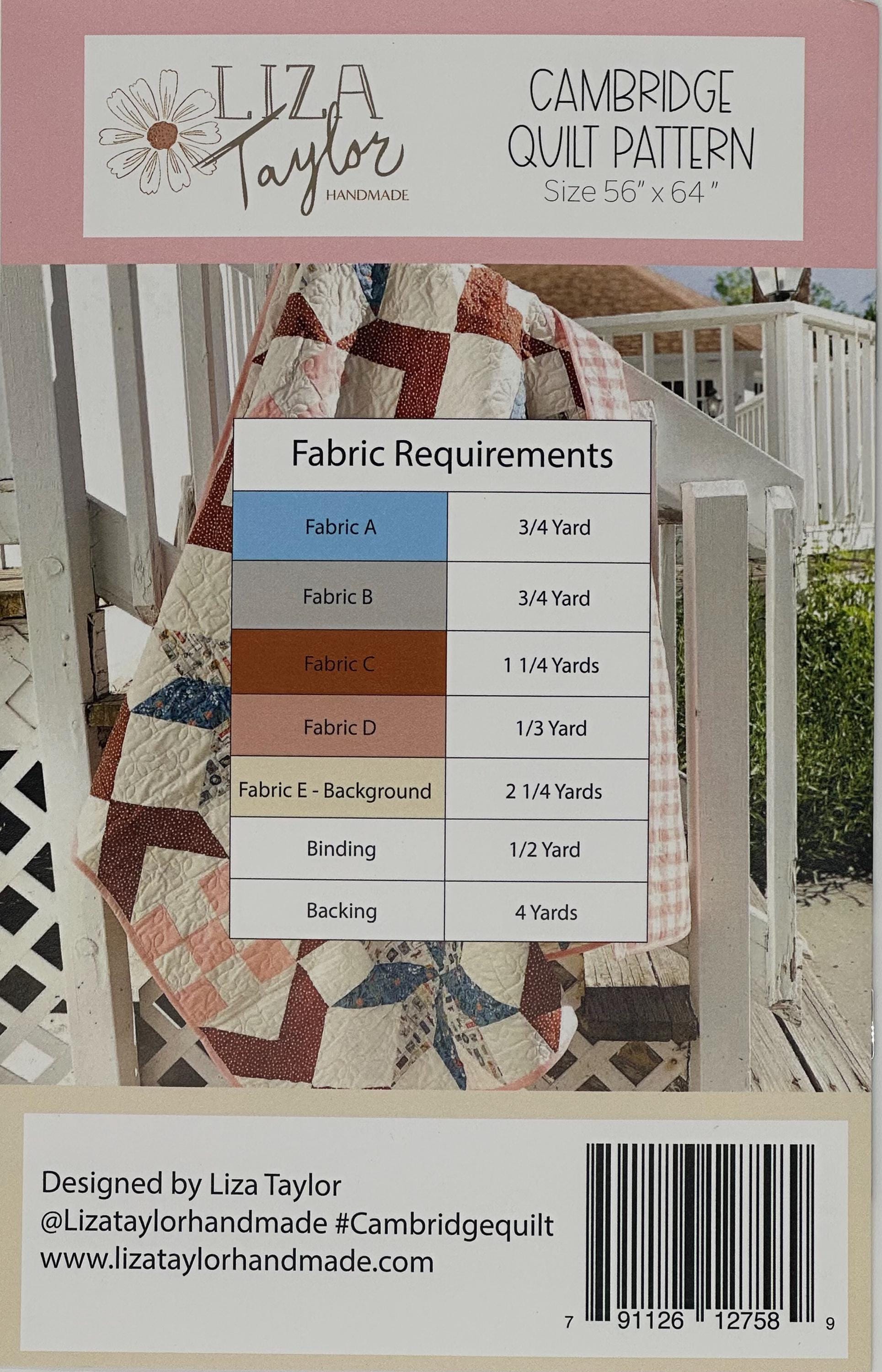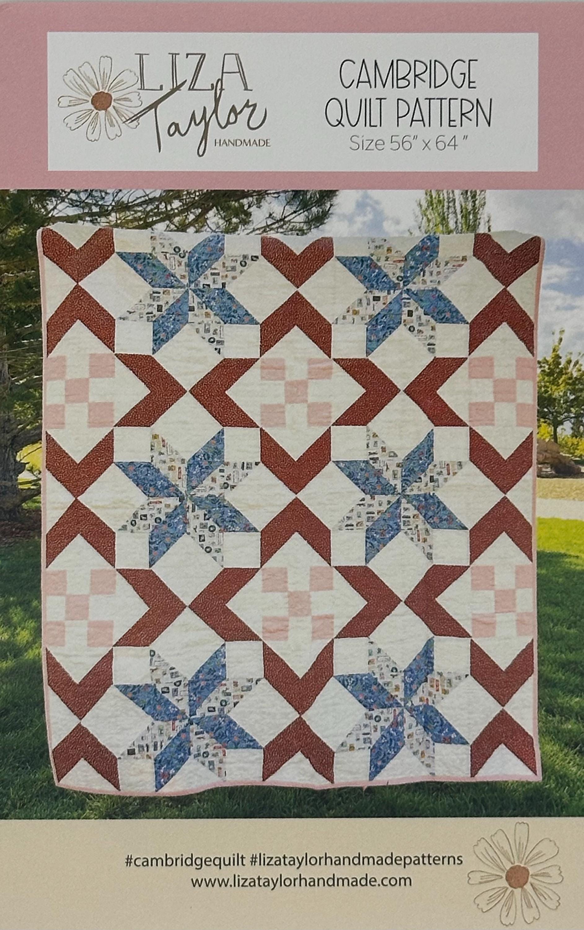 The Cambridge Quilt by Liza Taylor of Liza Taylor Handmade is a great one to show off your favorite prints and is beginner friendly. The large stars and interwoven checkerboard accents are the perfect stage to let your creativity shine. Mix and match with the scrappy version, or stay more structured with the classic version. It is sure to become a treasured heirloom quilt. Finished size is 56" x 64".