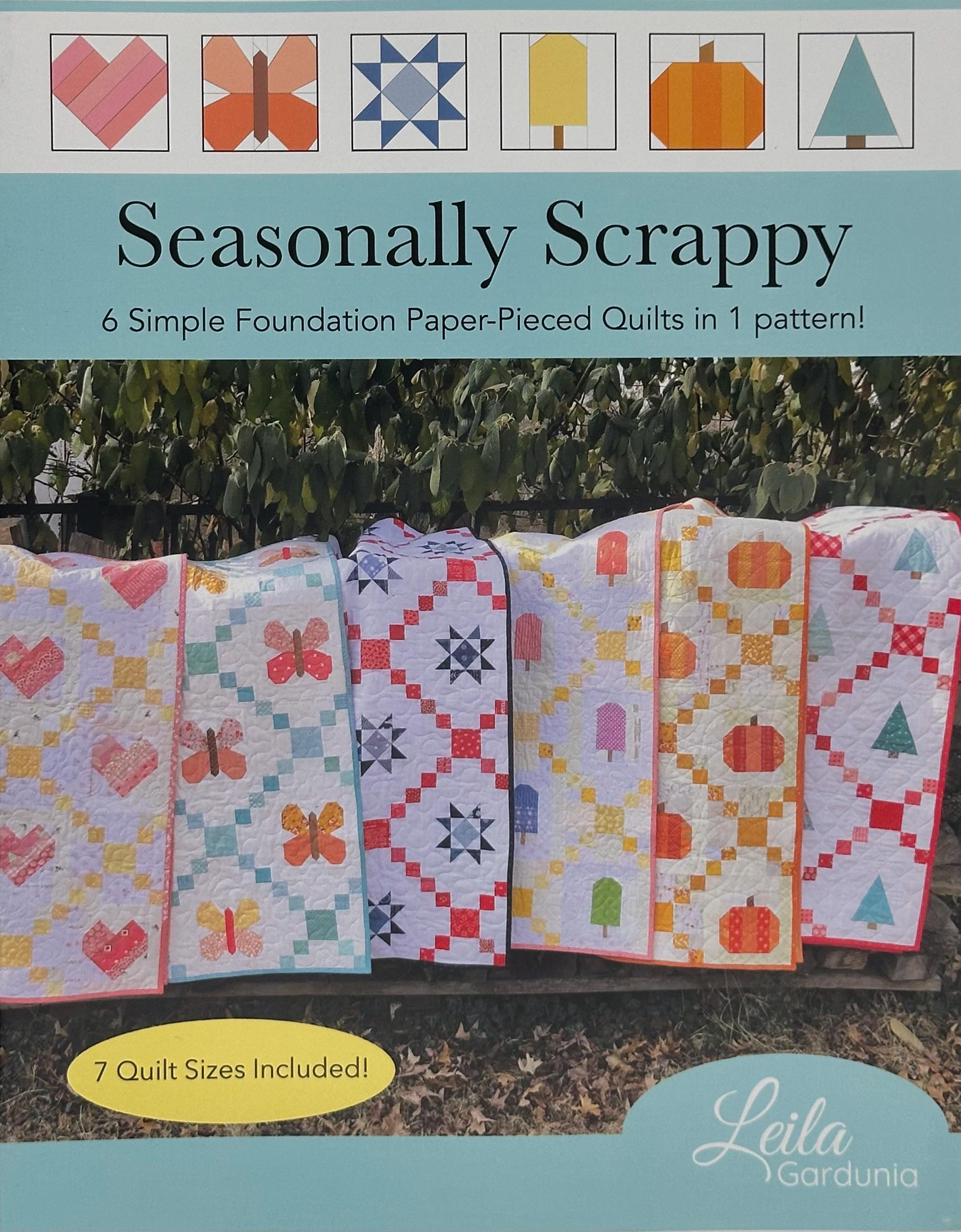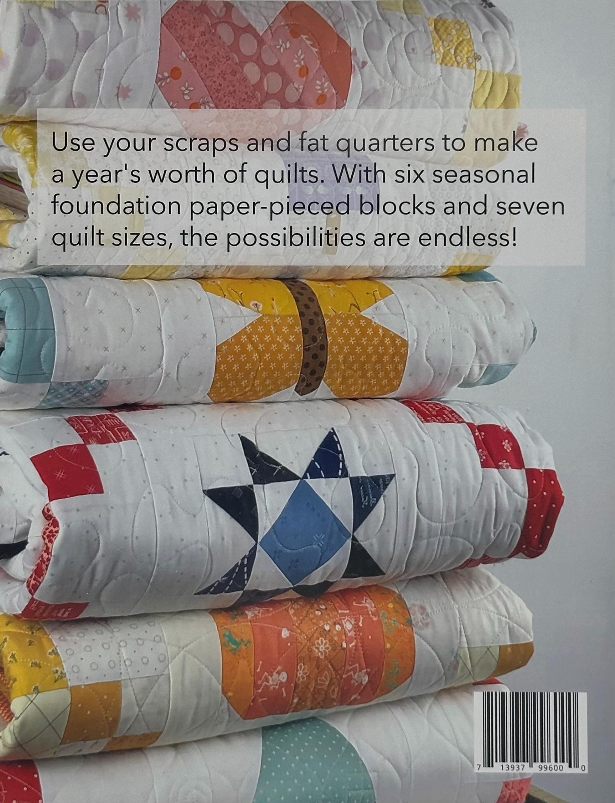 Instruction and foundations for six beginner-friendly quilts are contained in this pattern. Chain blocks are alternated with one of six different foundation paper-pieced blocks to make a quilt for every season. Seven quilt sizes for each variation are included (crib-king).
