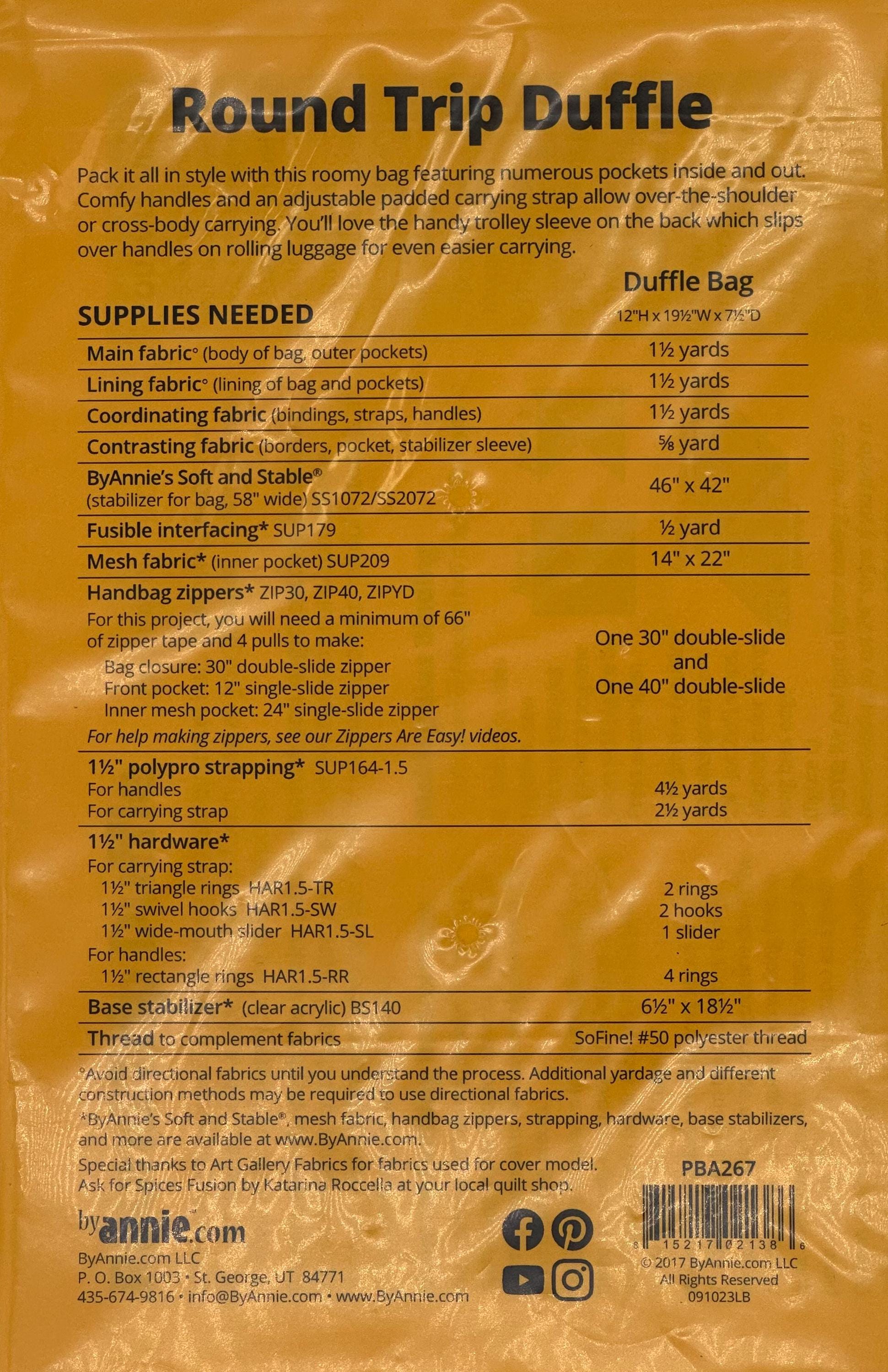 Pack it all in style with this roomy bag! Round Trip Duffle is sturdy enough for all your adventures and a bag that you will enjoy for years to come. The exterior of the bag features a handy combination slip and zippered pocket on front as well as slip pockets on each side and on the back. The main compartment opens with a double-slide zipper which extends part-way down each side, allowing easy access to the roomy interior. Inside are a full zippered mesh pocket and three fabric slip pockets. Comfy side handles and an adjustable padded carrying strap allow over-the-shoulder or cross-body carrying. You'll love the handy trolley sleeve on the back which slips over handles on rolling luggage for even easier carrying. The finished bag measures 12inH x 19inW x 7inD.