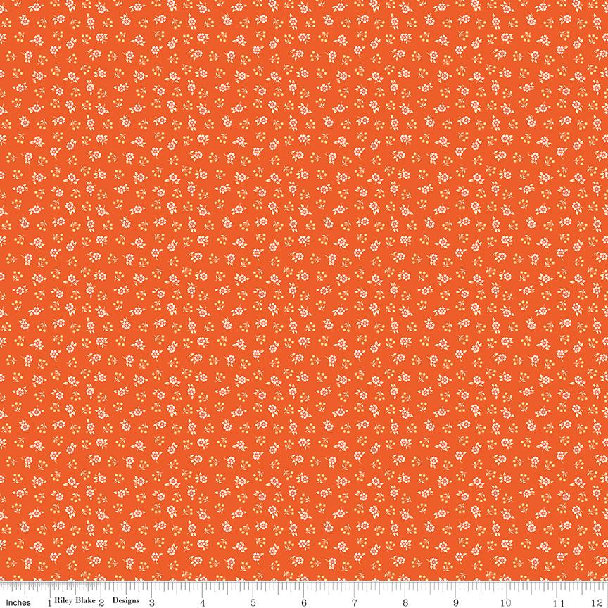 Peach Cobbler by Lily Ashbury for Riley Blake Designs is great for quilting, apparel and home decor. This print features delicate floral bouquets with winding stems, small blossoms, and scattered leaves.