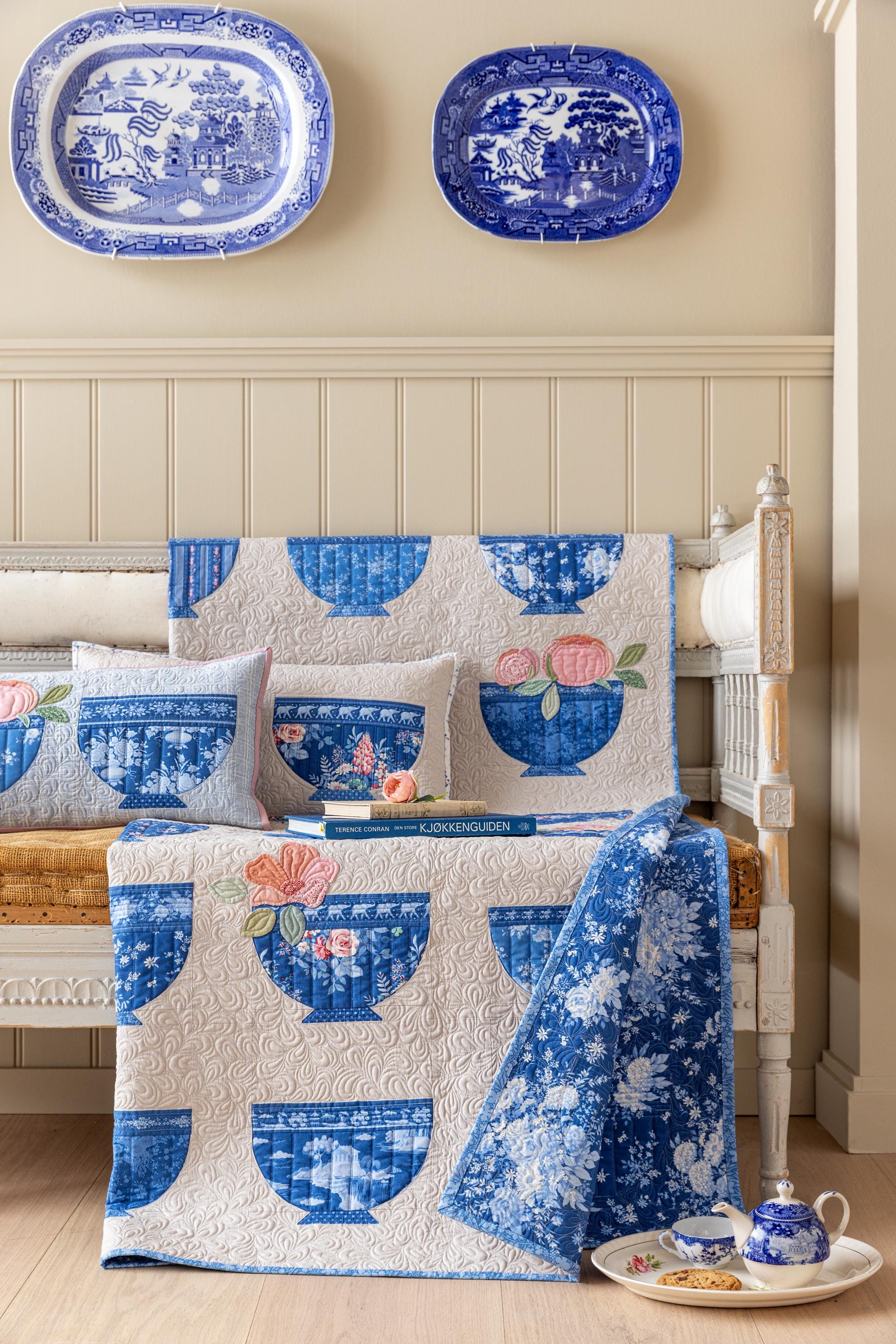 Something Blue Blenders include small florals, border stripes, quilt labels, and ornaments, making it ideal for creating stunning quilts, pillows, decorative accents, and more.